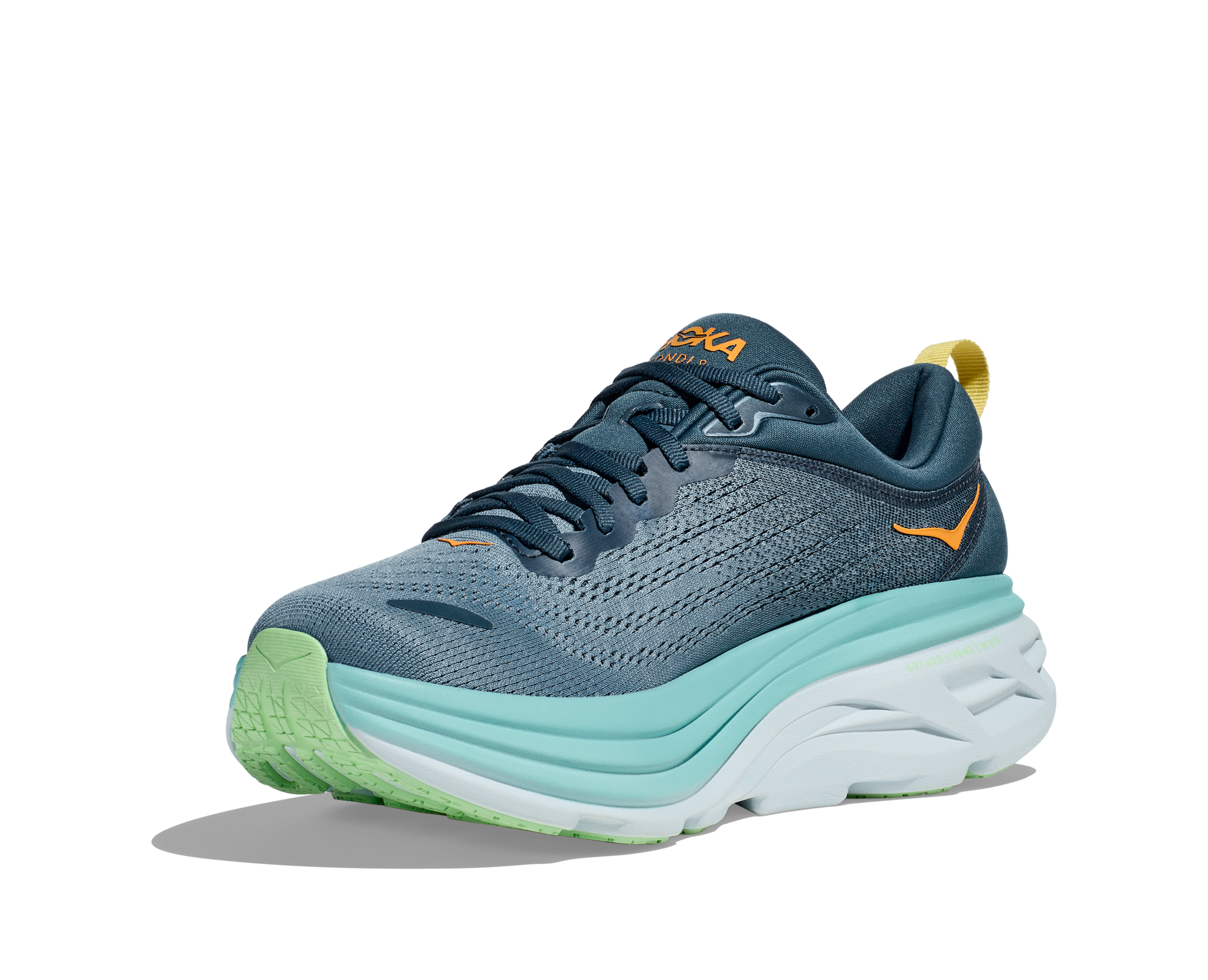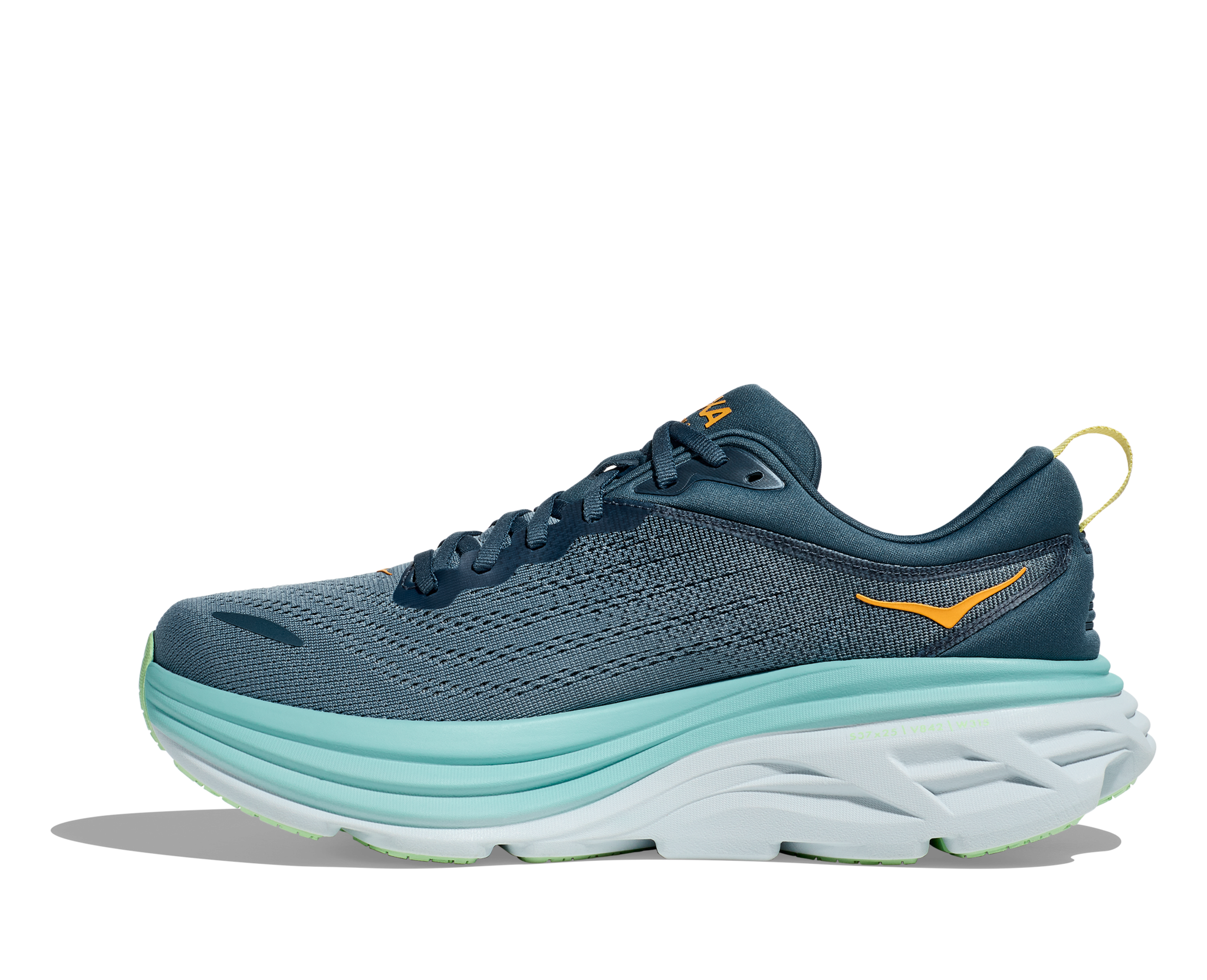 De Bondi is een van de hardst werkende schoenen in het HOKA-assortiment. Hij zet dit seizoen een gedurfde stap vooruit met zachtere, lichtere schuimsamenstellingen en een gloednieuwe, verlengde hielconstructie. Door het deinende effect van de schokdempende hielinzet ontstaat er een ongelooflijk zachte en uitgebalanceerde loopervaring, van het hielcontact tot de afwikkeling.