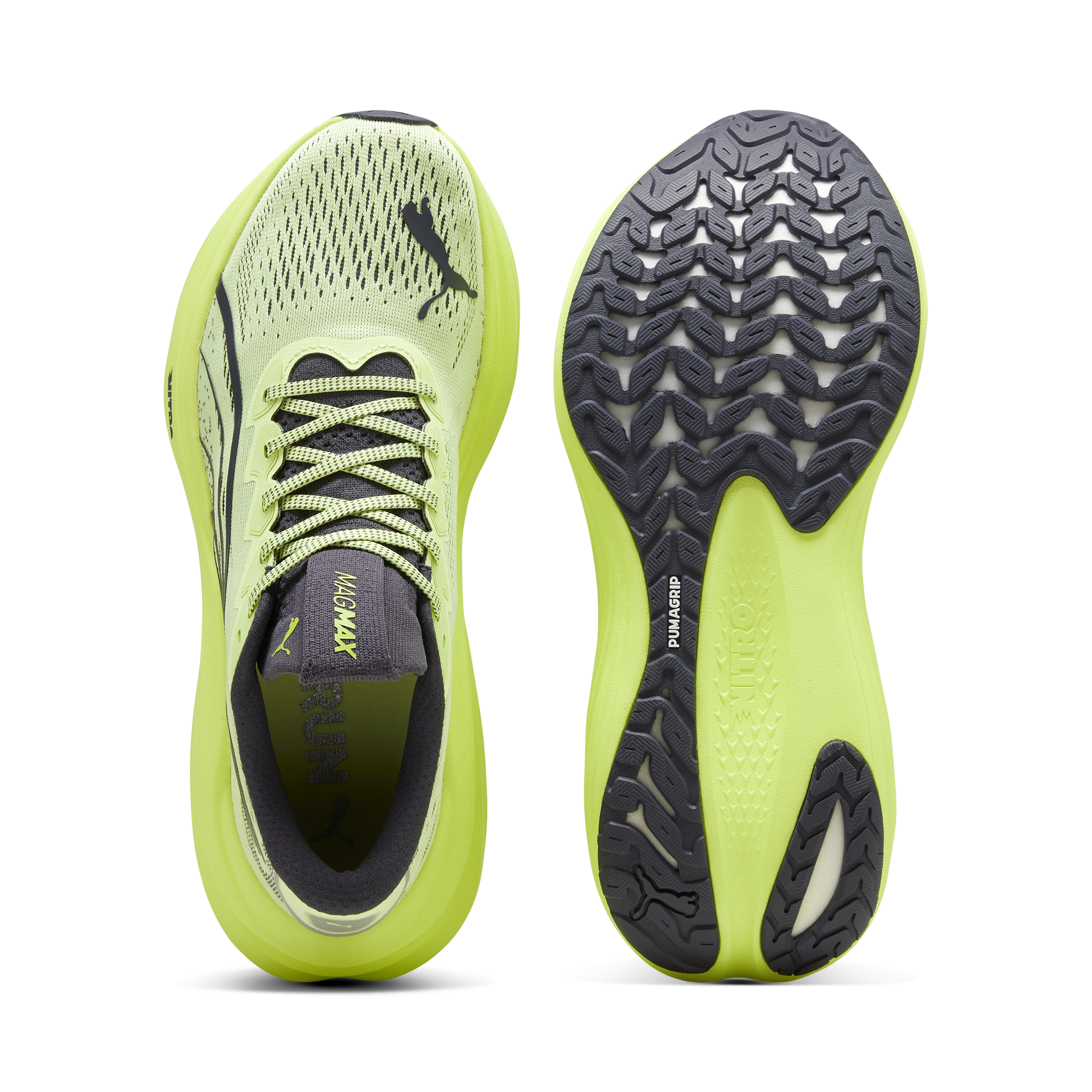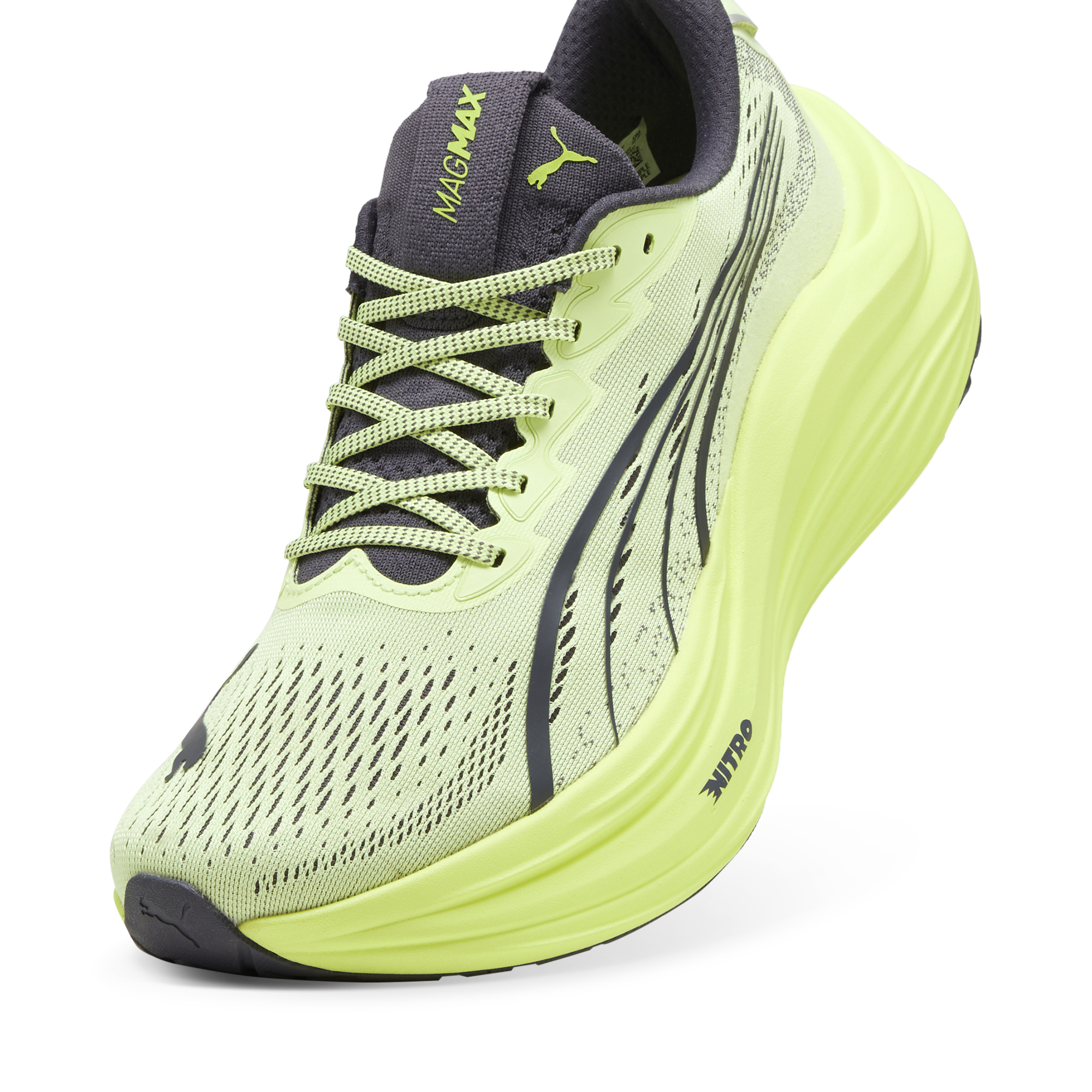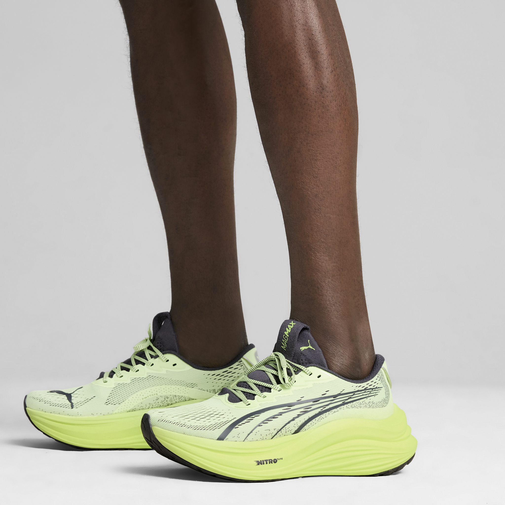 Ervaar een ongeëvenaarde bounce als nooit tevoren met de MagMax NITRO™. Met een indrukwekkende hoeveelheid geavanceerde NITROFOAM™-technologie stuwen deze schoenen je moeiteloos van de ene kilometer naar de andere en vullen ze je pas met opwinding en gemak. Rondom de voet vind je een comfortabele mesh, een luxe gebreide tong en een hiel met kussentjes. PUMAGRIP beschermt het kostbare NITROFOAM™ en biedt uitstekende tractie, zodat je stevig op je voeten staat.