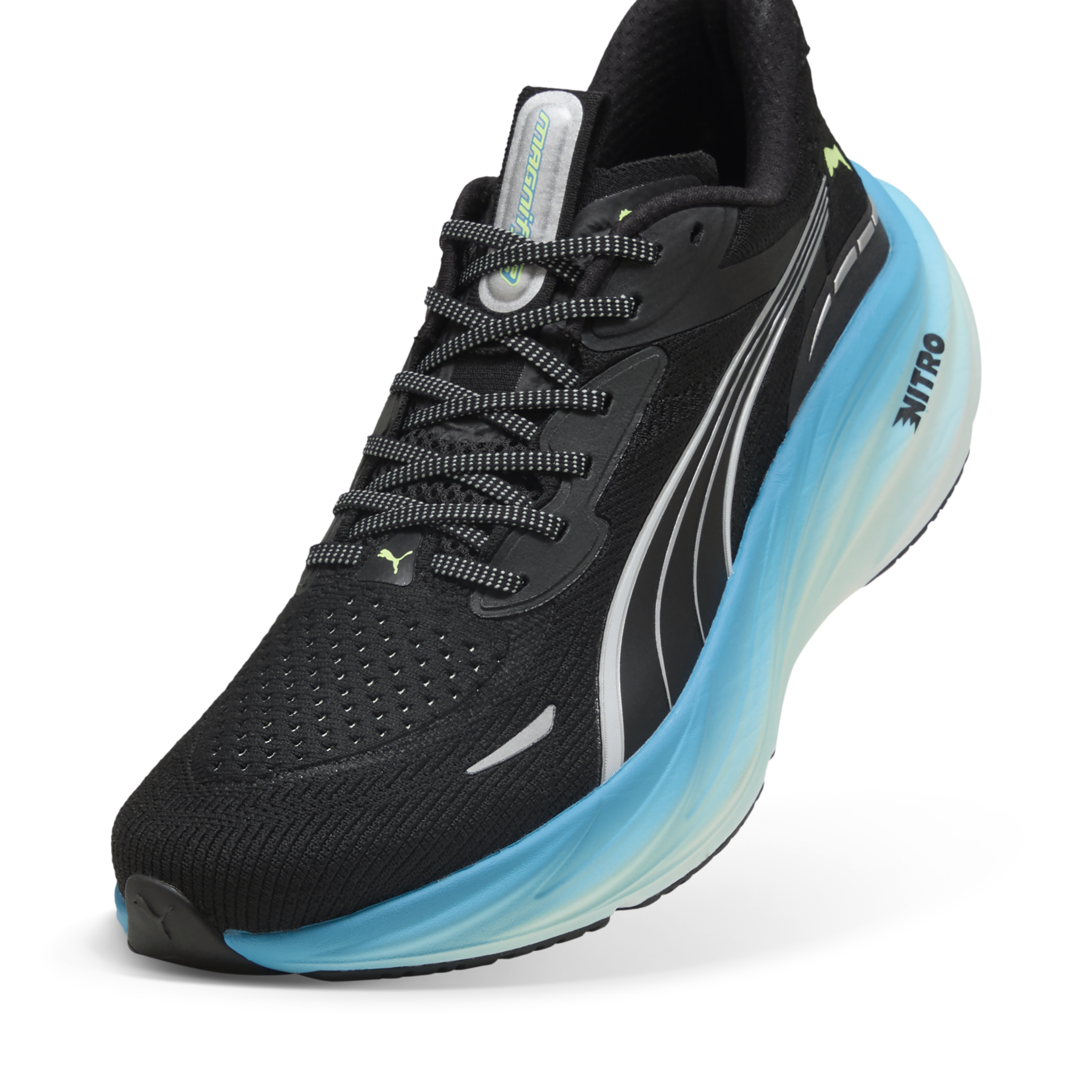 De hardloopschoen Puma Magnify Nitro 3 (PUMA Black/Speed Blue) voor heren is gemaakt voor de neutrale hardloper die op zoek is naar superieure demping en comfort voor iedere run. Deze schoen is allround inzetbaar door het NITROFOAM™ wat zowel zachtheid als responsiviteit biedt of je nu net begint met hardlopen, of traint voor je zoveelste (halve) marathon.