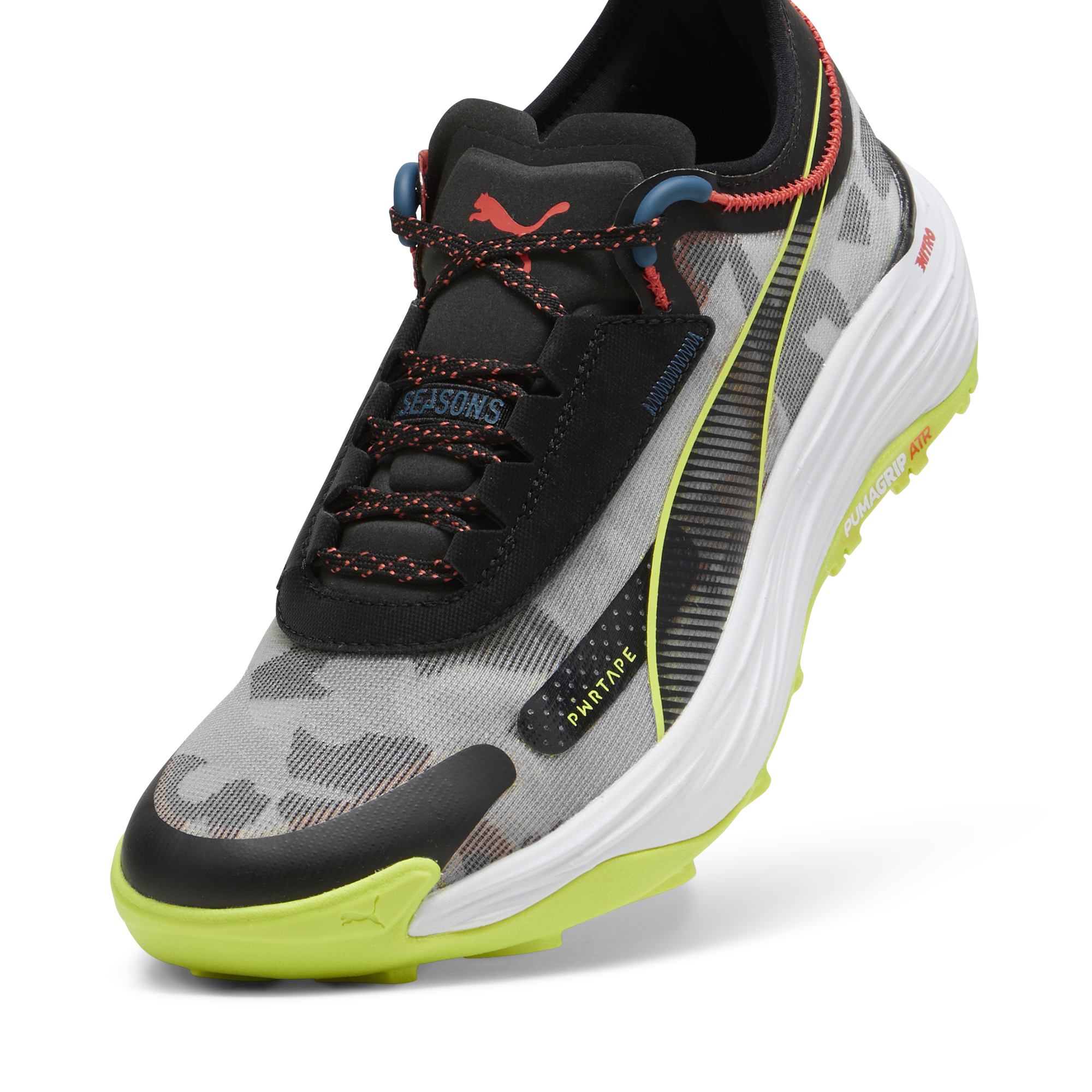 Pak elk terrein aan in de stevige omhulling van de Voyage NITRO 3. In deze vernieuwde versie van dit model hebben we de trailschoen voorzien van een tussenzool met volledig NITRO™ foam voor een lichter gewicht en een meer responsieve rit wanneer je afstanden overbrugt. De PUMAGRIP ATR rubberen buitenzool is vernieuwd met onze PWRADAPT technology, waardoor de noppen onafhankelijk van de grond kunnen bewegen voor superieure tractie op multi-terrein. Ons nieuwe, bredere bovenwerk is versterkt met PWRTAPE voor ondersteuning en bescherming, en de afvoeropeningen van de voorvoet voeren water af als een kampioen. Beheers je run, ongeacht het seizoen, met de Voyage NITRO 3.