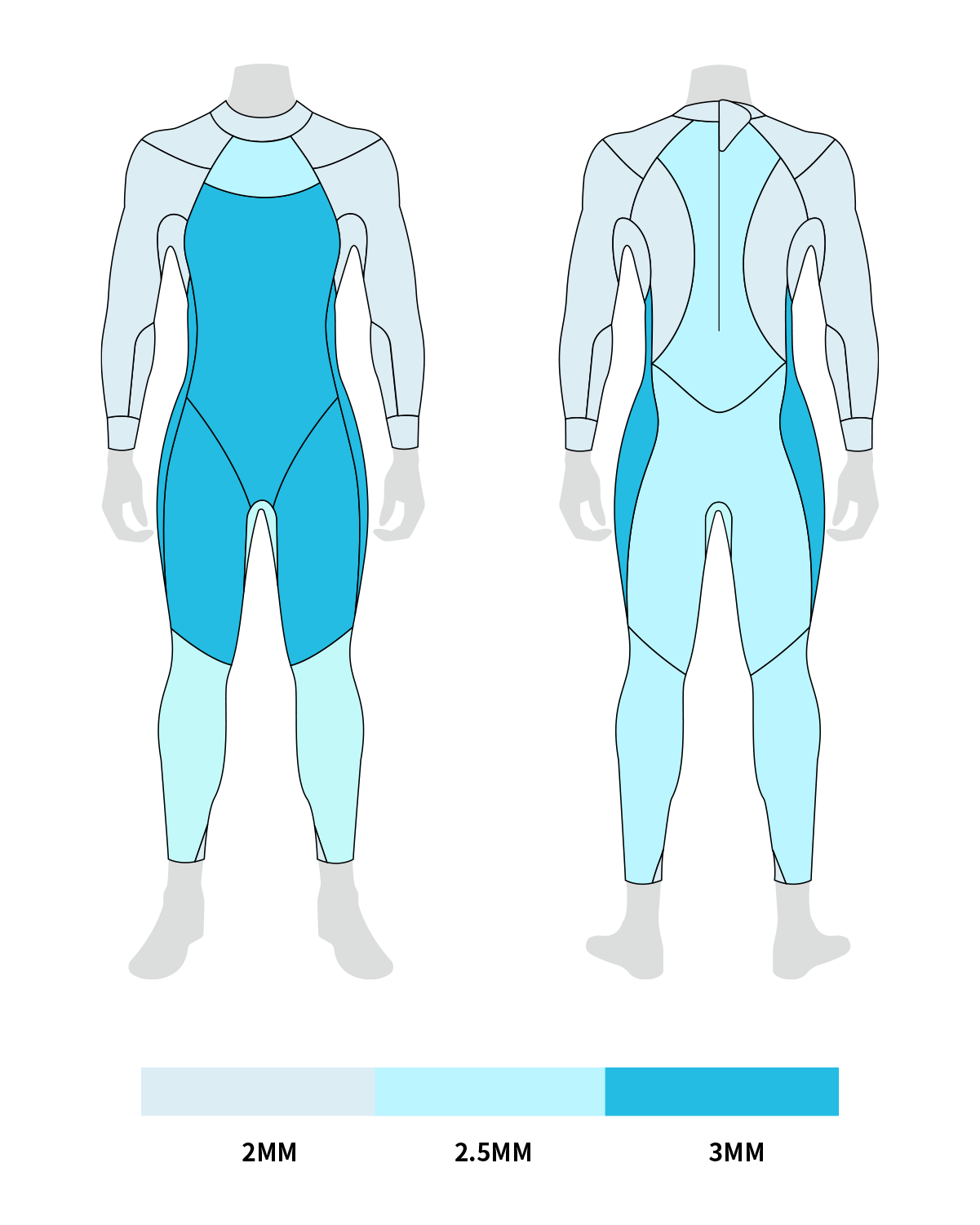 Het wetsuit is gemaakt van Yamamoto #39 neopreen, bekend om zijn flexibiliteit, drijfvermogen en duurzaamheid. De neopreen dikte is afgestemd op de beweging van het lichaam. Rond borst en bovenbenen zorgt 3 mm neopreen voor extra drijfvermogen en ondersteuning. Dunnere panelen van 2 mm rond armen en schouders geven veel bewegingsvrijheid tijdens het zwemmen.