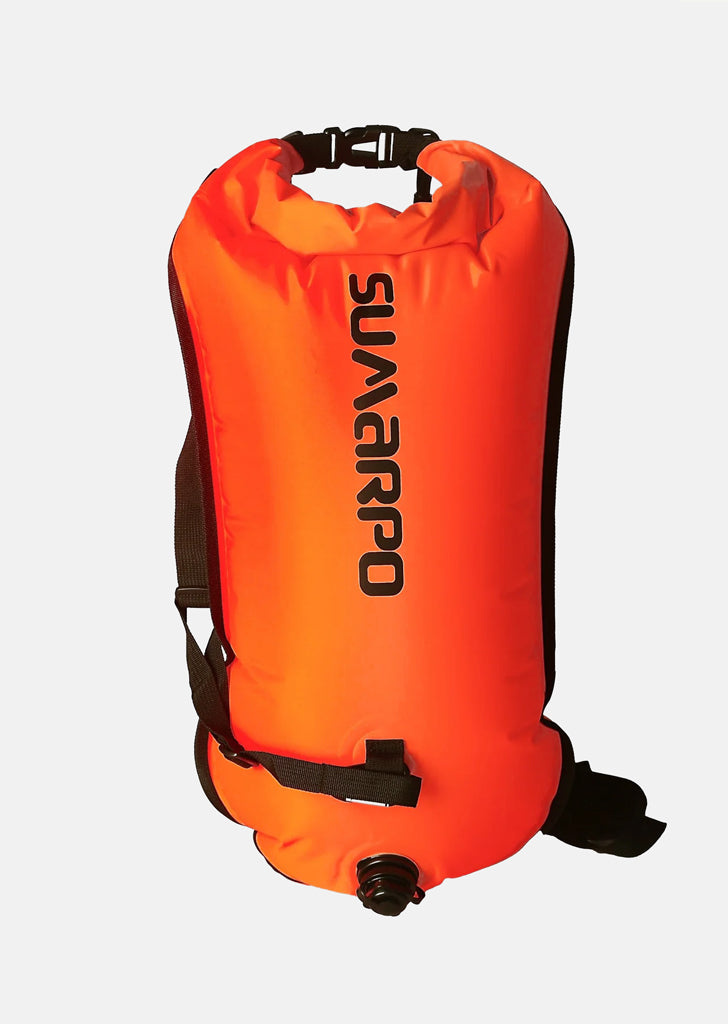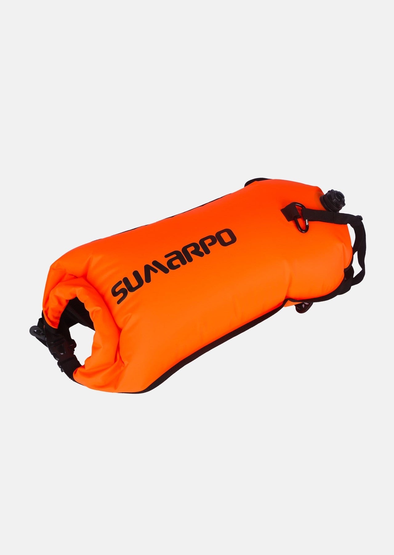 Een felgekleurde oranje zwemboei van het merk Sumarpo, waarmee je je eigen veiligheid waarborgt en dat van je kostbare spullen. De boei is inmiddels een onmisbaar hulpmiddel geworden voor zwemmers in openwater. Op veel plaatsen met kleine scheepvaart zelfs al een verplichting. Bedenk dat iemand op een boot jou niet ziet! Met een boei ben je zichtbaar. De zwemboei biedt een stevige ondersteuning die je gewicht kan dragen en je bent gemakkelijker zichtbaar. Neem tijdens het zwemmen je kleine persoonlijke spulletjes gemakkelijk mee zoals; sleutels, zonnebril, horloge, etc. en verberg het niet meer in de struikjes... ;) Je spullen zijn veilig en droog! De boei is 100% waterdicht.